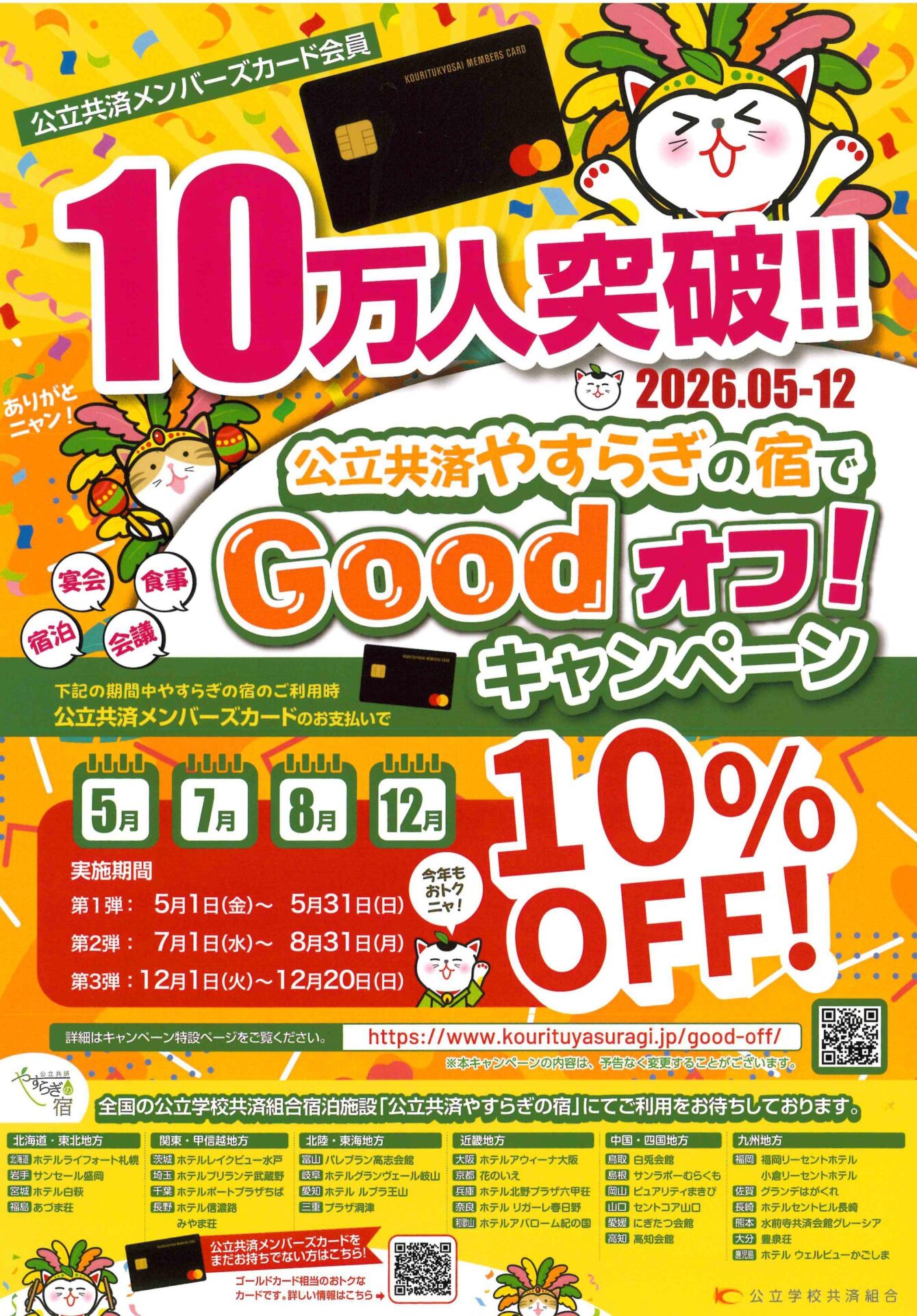 公立共済メンバーズカード会員数10万人突破を記念し、「公立共済やすらぎの宿」にて『Goodオフ!キャンペーン』を開催いたします。